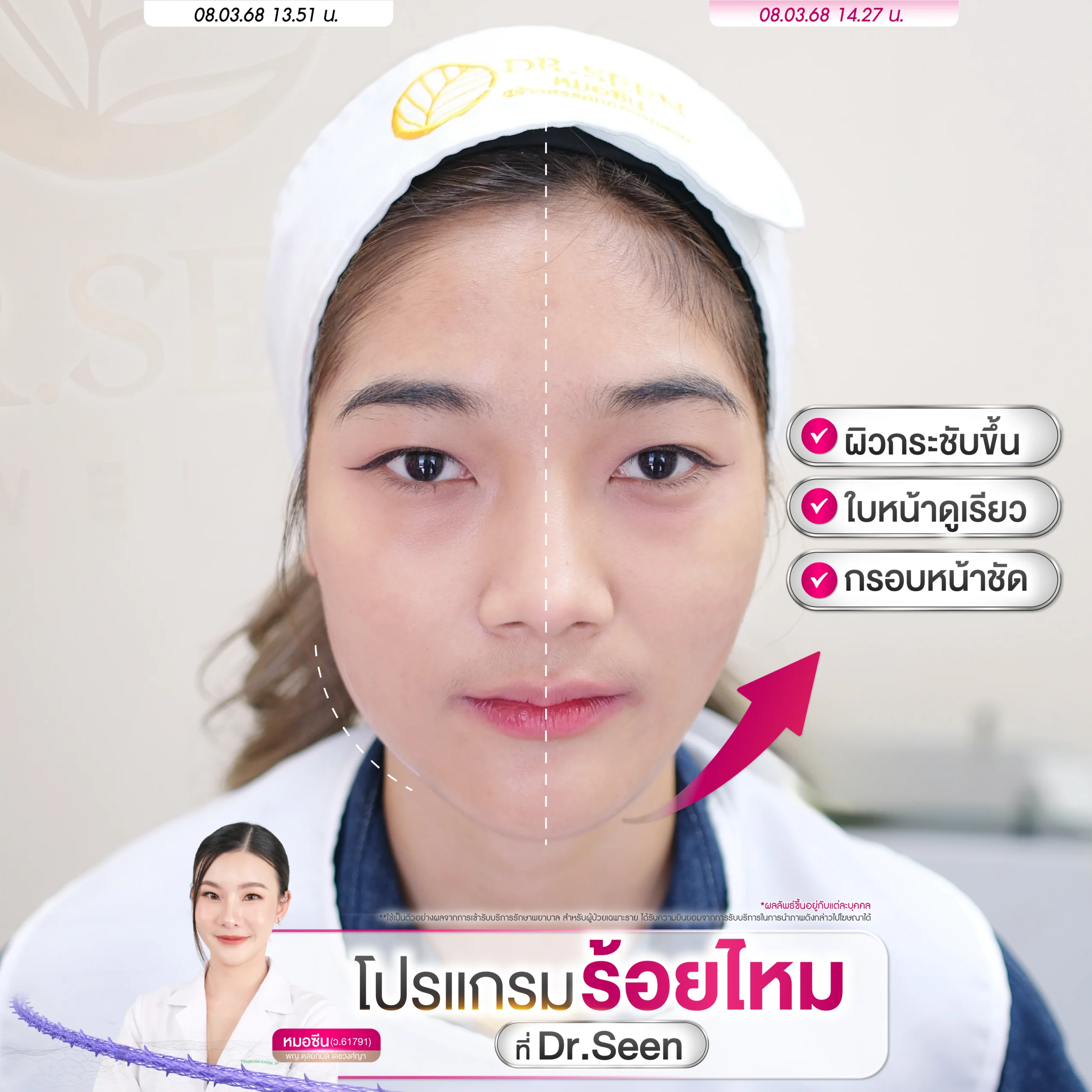 Dr.Seen Clinic ใส่ใจทุกรายละเอียด เพื่อผลลัพธ์ที่สวยที่สุด เพราะหมอซีนสร้างสรรค์ทุกความสวย ผลลัพธ์ชัดเจน เคสแน่น รีวิวแน่น การร้อยไหม ไม่ใช่ว่าแพทย์ท่านไหนก็ทำได้ เลือกแพทย์ผู้มีประสบการณ์ เลือก Dr.Seen