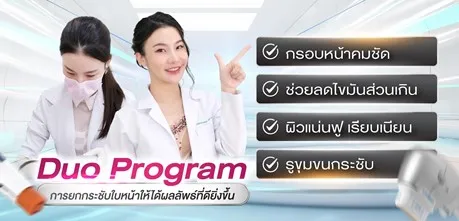 - ความคุ้มค่า : แม้จะมีค่าใช้จ่ายสูงกว่าการทำเพียงอย่างเดียว แต่เมื่อพิจารณาถึงผลลัพธ์ที่ได้ทั้งการยกกระชับ การลดไขมัน และการฟื้นฟูคุณภาพผิว การทำ Duo Program ถือเป็นการลงทุนที่คุ้มค่าที่สุดสำหรับการย้อนวัยโดยไม่ต้องผ่าตัด